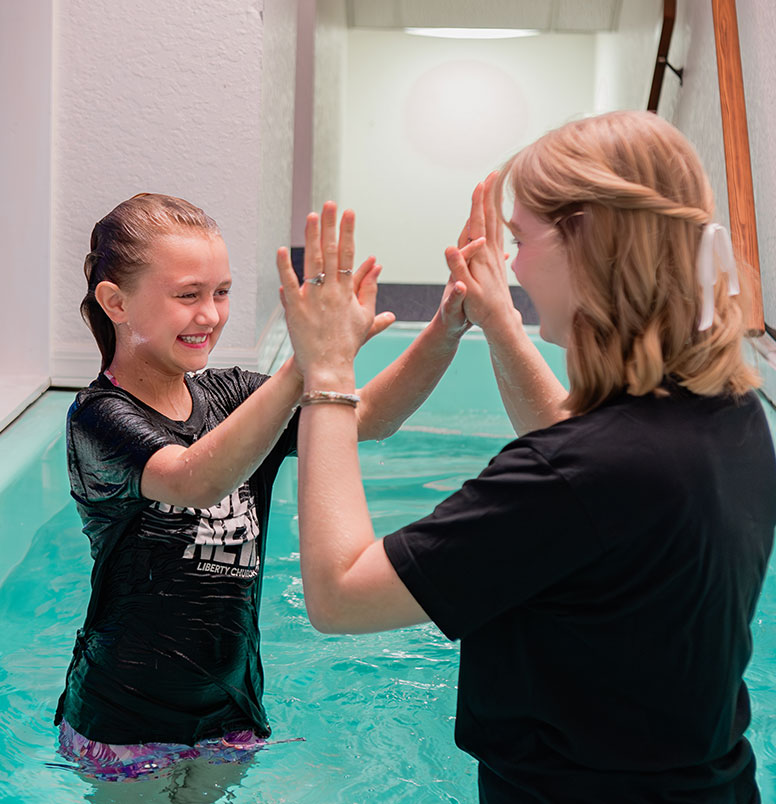 After saying yes to Jesus, baptism is the next step in your faith journey. It is an outward display of your inward decision to follow Christ. When you step into the water, you are letting the world know of your new commitment of faith in Jesus. Here at Liberty Church, every baptism is a celebration!
